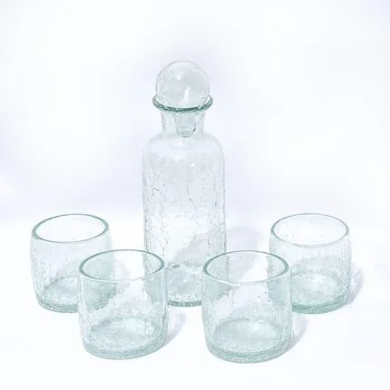 Soufflés à la bouche et façonnés à la main, ces verres présentent un effet craquelé fascinant, obtenu par un choc thermique maîtrisé. Ce fini donne un aspect à la fois brut et raffiné, idéal pour une décoration de table chic et intemporelle.